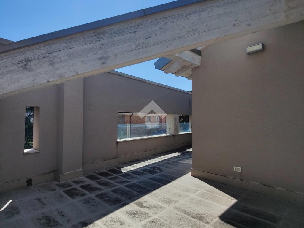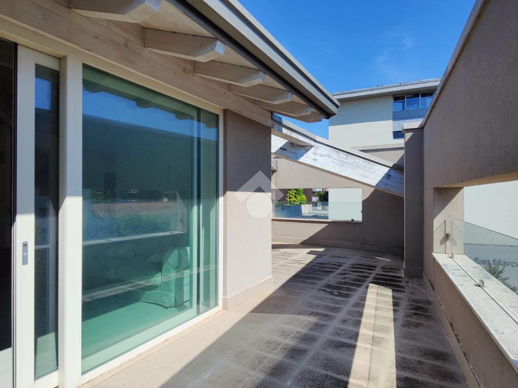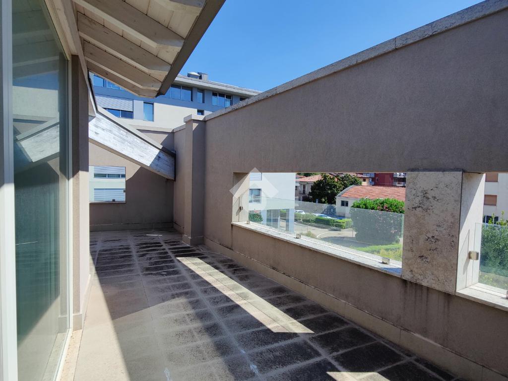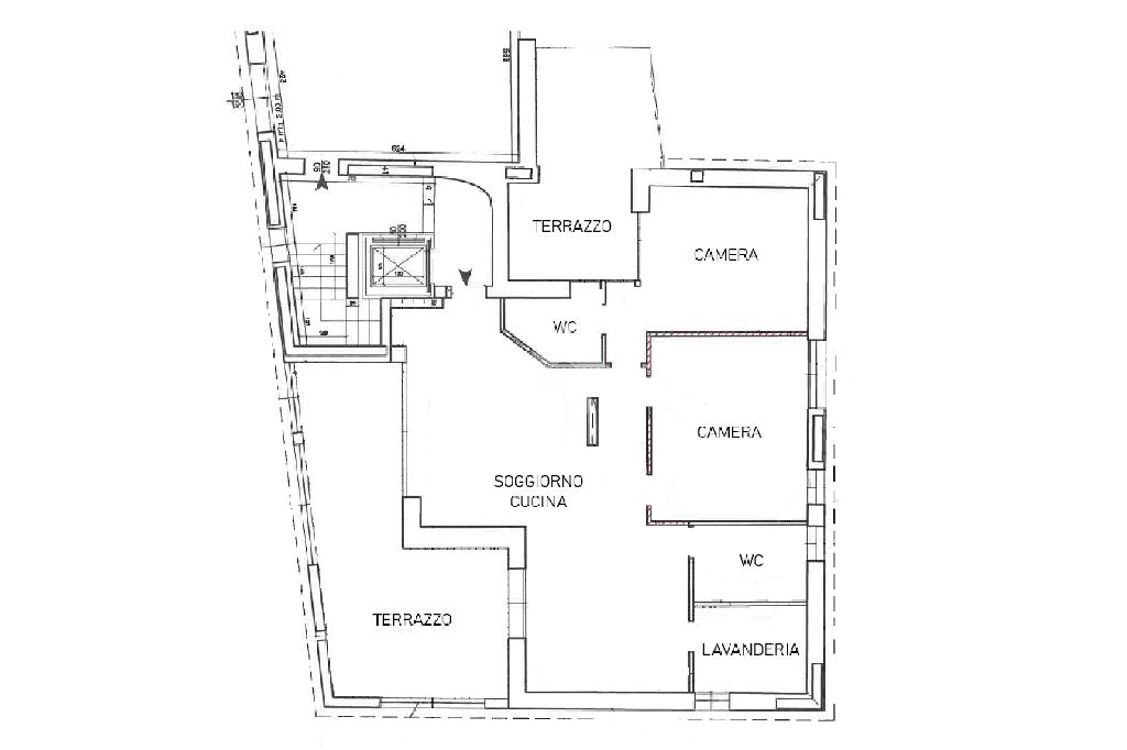 La zona giorno, spaziosa e luminosa, si affaccia su un terrazzo abitabile; la zona notte comprende due camere da letto, di cui una con accesso al secondo terrazzo, oltre a due bagni finestrati e una comoda lavanderia.